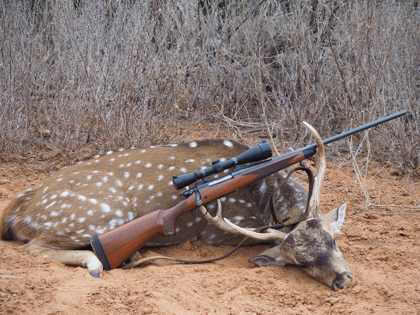 My first Axis deer, taken with the good old 25-06 Remington topped by a 6x Leupold. I’ve used this rifle and the near twin in 30-06 for much of my hunting over the past 20 years and have taken mule deer at 400 yards and coyote a bit farther than that.