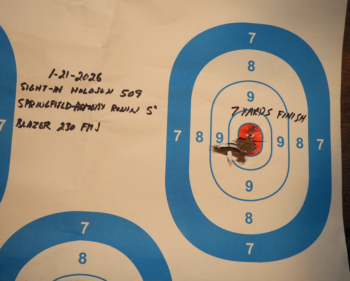 Sighting in was a simple process. At the range I went through only the second box of ammo from this pistol, CCI Blazer 230 grain FMJ ammo was used, starting at 7 yards.